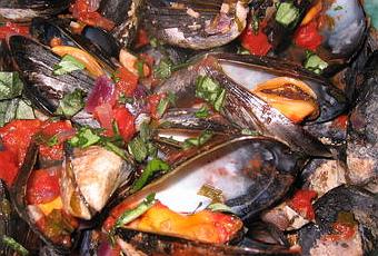 Dans une autre casserole, faites cuire les moules à feu vif. Dès qu'elles s'ouvrent ajoutez-les à la sauce sans leur jus ou alors très peu et ajoutez un peu d'eau. Laissez cuire encore 5 mn.