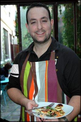 Yann très content de la réalisation de son plat vient nous le faire goûter. Et devinez quoi ? C'est un régal !