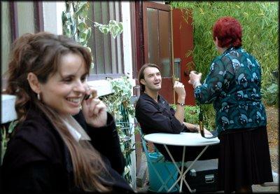 Entre deux tournages, Cyril se montre très disponible à nos égards et discute bien volontiers avec chacun d'entre nous. En l'occurrence c'est avec moi pour le moment et visiblement cela me fait bien rire.