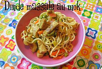 On est sorti un peu des sentiers battus et au lieu d'associer les épices à une sauce aux tomates comme il se doit, on les a utilisées pour relever un émincé de dinde. La poudre de massale relève les plats de façon délicate. Il parfume plus qu'il n'épice. Sa saveur est comparable à celle du curry je trouve. Pour ce plat, n'hésitez pas à varier les ingrédients, en ajoutant dés de courgettes, de poivron, petites florettes de chou fleur… ou en utilisant du boeuf à la place de la dinde.