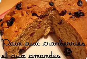 Couvrir le bol d'un linge propre et la laisser lever dans un coin chaud et à l'abri des courants d'air. Dès qu'elle a doublé de volume, ajouter les amandes et les cranberries. Travailler à nouveau la pâte et la déposer sur une plaque allant au four. Couvrir et laisser à nouveau lever pour 30 minutes.