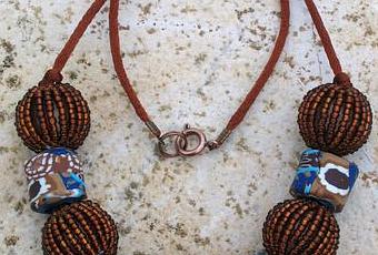 Bon, vous ne trouverez pas forcément le lien ... c'est juste que le dessin des perles de fimo venait de ma tunique marron en bleue !!!