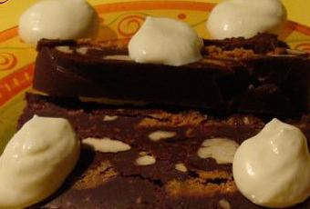 A refaire avec du chocolat au lait (sans le sucre) pour pouvoir découper en belles tranches, il est possible de changer de biscuits pour varier les plaisirs!!!!