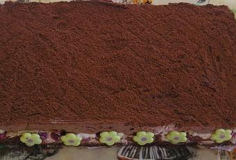 J’ai juste imbibé le biscuit d’un sirop de vanille avant me mettre la créme mousseline et la mousse au mascarpone au chocolat