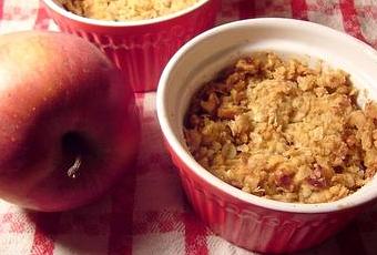 6. Compter une pomme par personne. Eplucher et couper les pommes en petits cubes puis les citronner pour les empêcher de noircir. Beurrer 2 ramequins. Les remplir des fruits, ajouter un peu de jus de citron et un peu de sucre en poudre sur les fruits et couvrir du crumble.
