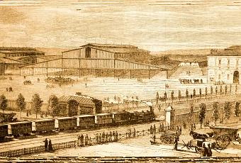 Les abattoirs de La Villette en 1867. C'est Napoléon Ier qui avait fait construire les premiers abattoirs dans Paris. Avant, les animaux étaient tués n'importe où, dans des hangards, en pleine rue à proximité d'une boucherie ou dans des cours d'immeubles. C'est Napoléon III qui fit fermer l'abattoir de Montmartre (avenue Trudaine, remplacé par le collège Rollin devenu Jacques Decour aujourd'hui) pour ouvir de nouveaux lieux d'abattage, dont celui de La Villette construit par Baltard en 1865-1866. L'inauguration se fit en présence du couple impérial le 5 janvier 1867.