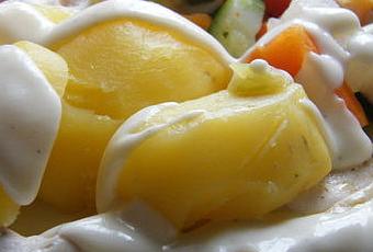 Verser le bouillon de légumes dans le bol. Lavez et épluchez les pommes de terre, les couper en morceaux, les mettre dans le panier cuisson et les faire cuire 10 minutes - Varoma - Vitesse 2.