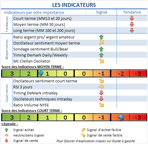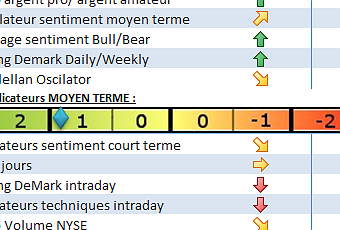 Hier nous vous indiquions que les premiers signaux de vente se mettaient en place mais que pour nous conforter dans notre scénario haussier moyen terme, nous voulions voir les indices continuer à faire des plus hauts. Cette obstination à la hausse malgré le surachat/suroptimisme s'est effectivement mise en place. Cela nous conforte dans le scénario d'un point bas moyen terme atteint la semaine dernière.