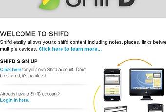 Bien sûr, vous pouvez également utiliser Shifd dans votre navigateur ou sur n'importe quel autre ordinateur : il vous suffit pour cela d'accéder à votre compte utilisateur. Qui plus est, il est possible de placer dans votre barre personnelle un bouton "shifd this", un bouton qui vous permetttra de mettre directement en notes vos sélections de pages internet, mais également de conserver les liens et les adresses (avec cartes). J'ajoute que Shifd, évidemment, est utilisable sur tous les appareils mobiles : d'ailleurs, officiellement, ce n'est pas un vulgaire "carnet de notes", mais un "service de synchronisation de contenus Mobile-to-PC"...