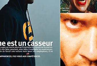Il y a quelques années on avait pu voir cette très bonne campagne pour Adia, agence de recrutement, qui jouait sur la discrimination (âge, physique, sexe, race…). Une phrase choc “ce jeune est un casseur” et en dessous en petit “d’idée reçue…”, par exemple. Vous vous souvenez tous, c’était pour le travail intérim je crois.