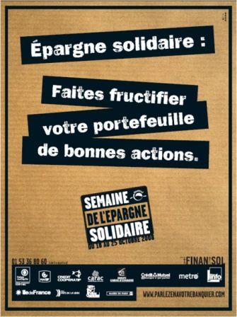 Organisée par Finansol avec le soutien actif des collectivités territoriales, des établissements financiers et des financeurs solidaires, cette nouvelle édition se tient du 18 au 25 octobre prochain. La Semaine de l’épargne solidaire fait peau neuve en 2008. Relayée au plan national et dans 13 régions, l’événement affiche de nouvelles ambitions pour faire connaître au plus grand nombre les possibilités de faire fructifier son argent dans des activités qui ont une forte utilité sociale et un vrai visage humain.