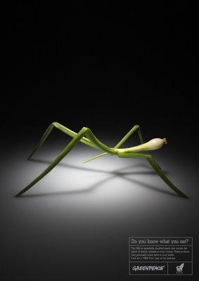 Il faut parfois (souvent) un visuel assez convaincant pour faire passer le message, voici celui de «Greenpeace» avec «Savez-vous ce que vous mangé?» pour une loi (c'est pas trop demandé il me semble) sur l'identification des produits «OGM». Agence: BBDO
