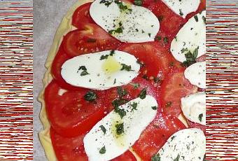 Disposer les rondelles de tomate sur la pâte à 1cm du bord et poser les tranches de mozzarella dessus.