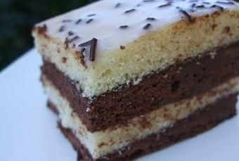 Découper le biscuit vanillé en 2 rectangles de même taille. Découper de la même façon le biscuit chocolaté.