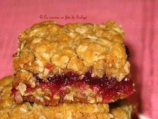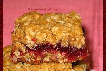 Recouvrir uniformément de la purée aux canneberges, puis du reste du mélange aux flocons d’avoine.