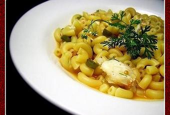 Ajouter l'eau de cuisson du poisson et de l'eau en quantité suffisante pour cuire les pâtes (attention: il doit rester du jus en fin de cuisson, mais en petite quantité). Porter à ébullition.