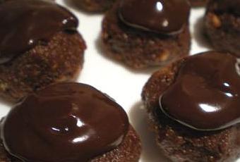 Former des petites boules de la taille d'une noix, j'en ai eu une vingtaine. Les disposer dans un plat. Napper les rochers de crème au chocolat et les mettre au frais pendant quelques heures.