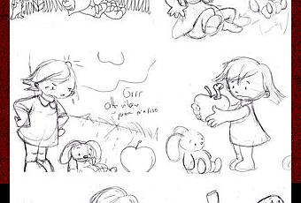 En fait , l'histoire de Cha sous le pommier date de bien avant le Globi : c'est même la toute première de Cha ..Il y a déjà bien sûr Lapoupou ...J'ai pensé que c'était rigolo de poster cette sorte de story-board qui dormait depuis plus de deux ans dans un coin de mon disque dur :