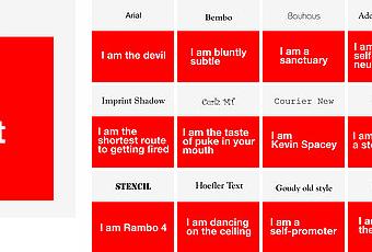 A chaque police de caractères correspond un trait de caractères. Voici un tableau qui fait le tour de quarante polices. N’y cherchez aucune référence sociologique, l’auteur a réalisé ces associations de manière totalement subjective. Pour les polices qui ne s’y trouvent pas, rendez-vous sur Flickr où les internautes ont laissé un commentaire et ont fait preuve d’imagination.