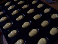 Je les ais mis dans mes empreintes mini madeleines Flexipan à la poche à douille