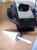Ma dernière folie , le gaufrier à cornets ... il a été commercialisé dans les magasins LIDL au mois de juin me semble t'il et après en avoir goûté chez une amie j'ai fait des pieds et des mains pour en trouver un !
