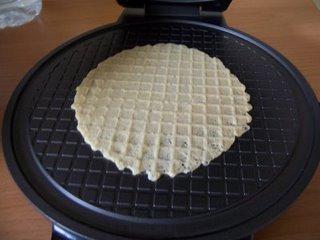 préchauffer le gaufrier et prélever une louche plus ou moins grande de pâte suivant la grandeur que vous voulez donner a votre cornet ...