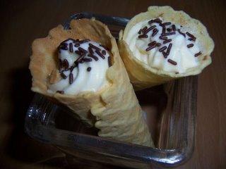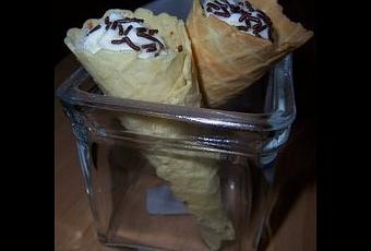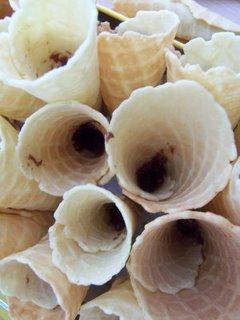 j'en ai surtout fait des petits pour accompagner un café gourmand ... pour bien les fermer j'ai coulé du chocolat dans la pointe du cornet