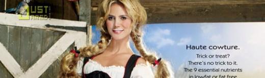 La très sexy Heidi Klum vient de prêter son image à la célèbre campagne de publicité "Got Milk" afin de vanter les mérites du lait pour les plus jeunes. Une campagne qui s'appuie sur le côté "des origines" de la belle, habillée pour l'occasion en bavaroise. Du Heidi Klum sexy et toujours délirant surtout avec sa petite moustache de lait...