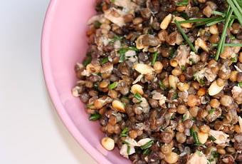 Salade de lentilles au thon et aux pignons grillés