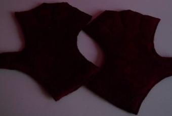 Ces mouffles aux doigts palmés ont été réalisées dans une chute de feutre neuf mais l'atelier de créatifs lyonnais travaille aussi "bâche PVC publicitaire, PVC armé de piscine, soie, laine, mohair, moquette, textiles synthétique, encre d'impression, moquette de salon, fils divers, passementerie, cuir, papier d'affiches publicitaires, cartouche d'encre, chambre à air, fer à béton, boîte de conserve..." si l'on en croit le site Internet !
