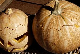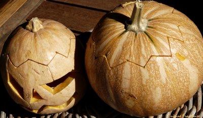 Promis demain, j'arrête!!! Mais si on veut des lanternes pour éclairer le chemin, il faut bien cuisiner, Nan! Demain, à partir de 18h00 la ti-mamaille du quartier va défiler avec des sacs deux fois trop grands pour eux. Alors aujourd'hui, on creuse les giraumons pour parce qu'ils se prennent les pieds dans l'escalier .