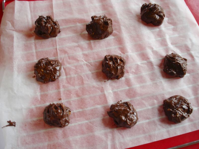Sur une plaque à biscuits graissée, déposer des petits tas de préparation, en prenant soin de laisser un peu d'espace entre chaque biscuit.