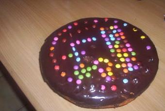 5./ Quand la crème est presque figée, décourer le gâteau avec des smarties.