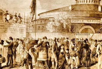Des milliers d'allemands, d'irlandais, de français se sont expatriés en Amérique. Le désir de s'enrichir ou de fuir la misère poussa le plus grand nombre à s'exiler dans le nouveau monde. Mais, ce que les immigrants ont trouvé dès la descente du bateau, la valise sous le bras, pendant cinq ans que dura la guerre, ce fut des racoleurs qui attendaient devant le bureau de Castel-Garden. Ce bureau d'enrôlement ouvert en permanence utilisait tous les moyens de séduction pour obtenir des engagements dans l'armée du président Lincoln. Sur une grande toile on offre de l'or, le chiffre est inscrit en anglais et en allemand. Une musique entraînante, et un verre ou deux de Whiskey, complètent la panoplie des avantages à aller combattre pendant la guerre civile.