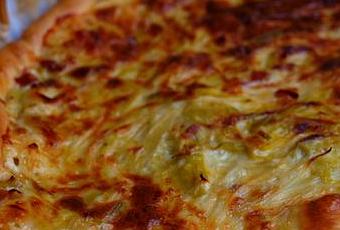 Etaler la pâte dans un moule, la remplir de la préparation et enfourner à 200° pour 25mn environ.
