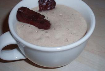 Crème mousseuse de champignons aux croustilles de magret fumé