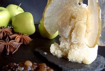 Les lentilles de Mamina, je les ai associées à un sorbet de pommes granny agrémenté d'une pointe de calvados. Le chef Michel Trama a présenté un sorbet de pommes d'une façon bien originale que je m'étais promise de tenter à l'occasion. C'est chose faite.