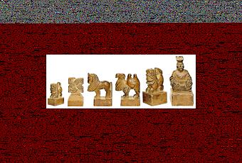 > Bers (la reine): Le nom désigne une panthère des neiges, bien que la pièce représente parfois d’autres animaux, sauvages pour un joueur - le lion et le tigre – domestiques pour le second -comme le chien ou le coq. Puisque le lion est inconnu en Mongolie, sa présence peut être l’indice d’une origine Perse. Le vocable « Bers » pourrait provenir d’une déformation du Perse « Firz (an) » ou du « Fers » Turc, par des Mongols ne connaissant pas le F. La pièce jouerait alors le rôle du vizir (ou ministre du Xiang-qi), et non d’une reine.