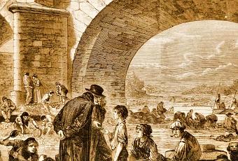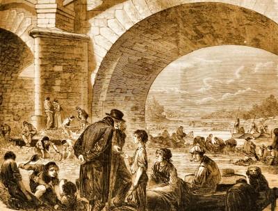 Pendant les mois d'été, il n'est pas rare d'apercevoir, du Pont-Neuf ou du Pont des Arts, le fond du fleuve sur toute sa largeur. C'est là que se réunissent des individus exerçant une profession bien saisonnière ! Dès le lever du jour, au pied des berges du fleuve, des groupes se forment de l'eau jusqu'au genoux, barbotant dans la vase près des sorties d'égouts. Ils fouillent le fond de l'eau à la recherche de pièces de monnaie, de bijoux, de l'argenterie, de vieux débris de cuivre ou de plomb ou toutes sortes d'objets de larcins abandonnés, jetés dans la Seine. Ces individus, chiffonniers, ou pauvres gens en quête d'un peu d'argent pour survivre ont été surnommés "les ravageurs de la Seine". Leurs découvertes sont multiples; sous le Pont-Neuf un cachet d'argent à double face aux armes de Catherine de Médicis, plus loin un couteau damasquiné d'argent. Vers l'île de la Cité, ils ont trouvé une étrange hache en pierre polie noire d'une dimension hors du commun. Sous le Pont-des-Arts la plus curieuse épave est une petite boite en cuivre renfermant le portrait de Mlle de la Vallière peint à l'huile sur du métal. Seul les rouges ont subit une altération et viré au noir. La banlieue parisienne a aussi ses ravageurs; on a même donné son nom à une île artificielle à Asnières, au Pont de Clichy.