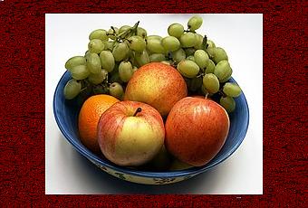 Ananas, Banane, Chataigne, Clémentine, Goyave, Kaki, Mandarine, Noix, Noix de coco, Orange, Pamplemousse, Papaye, Poire, Pomelo, Pomme, Raisin, Rhubarbe