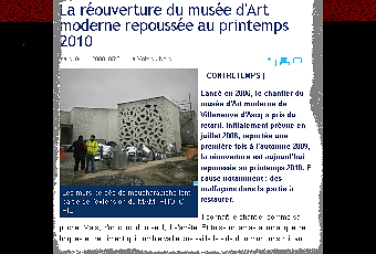 Lancé en 2006, le chantier du musée d'Art moderne de Villeneuve-d'Ascq a pris du retard. Initialement prévue en juillet 2008, reportée une première fois à l'automne 2009, la réouverture est aujourd'hui repoussée au printemps 2010. En cause notamment : des malfaçons dans la partie à restaurer.