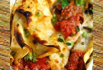 Quand tout est prêt, montez les lasagnes. Placez côte à côte deux feuilles de pâte au fond de la barquette, faites dépasser les feuilles sur les côtés (regardez la photo pour mieux comprendre, je ne suis pas toujours doué pour les descriptions). Puis versez une couche de sauce à la viande, quelques herbes et de la mozzarella. Repliez ensuite la feuille de pâte et recommencez l'opération autant de fois que nécessaire pour arriver en haut de la barquette.