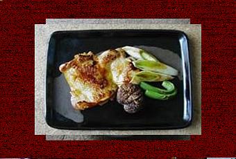 6. Coupez la viande en morceaux et arrangez-la avec les shiitakes et le poivron. Servez avec le shichimi-tôgarashi.