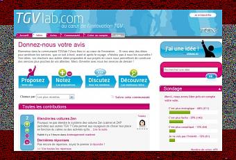 La SNCF vient de lancer un blog de dernière génération pour échanger avec ses clients: TGVlab.com . Le système, basé sur la toute recente plateforme Talkspirit, est à 100% “web 2.0″ puisqu’il s’appuie sur le collaboratif et l’échange entreprise-clients. Chacun peut apporter des idées ou donner son avis pour améliorer le service du TGV. Les sujets affluent déjà, allant de l’accès Wifi à bord des rames à l’intensité de la lumière dans les voitures, en passant par l’évolution du Bar TGV. TGVlab.com comporte aussi des sondages (sur la dématérialisation des billets) où chacun peut donner son avis.
