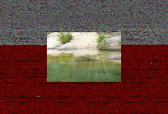 Là, un peu de mousse, là une algue qui s’étire paresseusement au gré du courant, plus loin quelques pierres d’émeraude sur un lit de sable.
