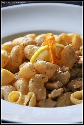 Pâtes sauce poulet, pignon et agrumes ou comment se faire plaisir en 12 minutes
