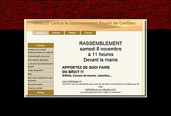 Rassemblement samedi 8 novembre 2008 des Conflanais de tous bords - habitants, commerçants, associatifs, parents d'élèves, clients du commerce de proximité...qui ne veulent pas du stationnement payant en ville.