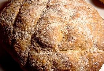 C' est un super pain assez rustique qui reste moelleux deux jours et qui se congèle ensuite en tranches sans problème. Pour une fois, j' ai fait la recette en gardant les proportions d'origine et j'ai eu un peu de mal à travailler cette énorme quantité de pâte qui m' a donné deux bonne grosses miches. La recette vient de Baking de Martha Day et serait d'origine russe.
