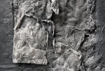 Matériau d’isolation derrière une plaque de décoration déposée, salon de coiffure, 10 rue des Francs Bourgeois, Starsbourg (67), le 31 octobre 2008.