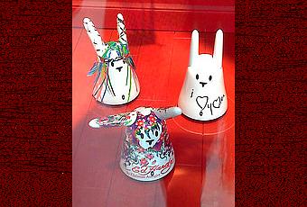 Pour ceux qui se sentent seuls et abandonnés au bureau en ce jour de pont, voici un 2ème post qui vous réchauffera le coeur...Les lapins Nabaztag* squattent les vitrines des Galeries Lafayette Maison (Paris) depuis le 4 novembre, et ce jusqu'au 26 décembre. Pour l'occasion, ils se sont mis sur leur 31 et se sont fait relookés par les plus grands stylistes du moment (Agatha Ruiz de la Prada, Jean-Claude Jitrois, Comptoir des Cotonniers, Zadig & Voltaire,...). Les petits lapinous seront mis aux enchères début 2009.